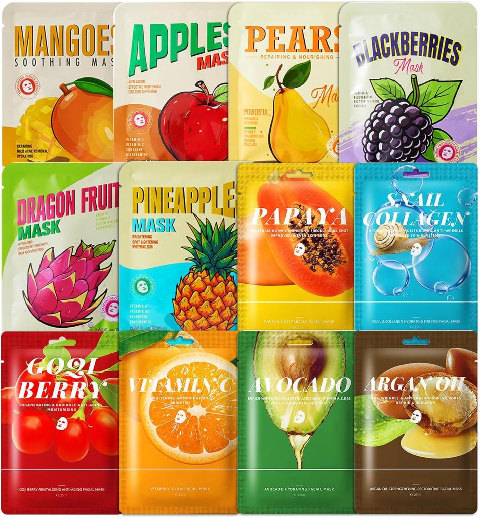 12 Masques en Feuille, Soin Coréen pour le Visage avec Ingrédients Naturels, Masque de Beauté Daily Care, Hydratation et Nourrissants pour Tous les Types de Peau, 25ML – Le détail qui change tout au quotidien