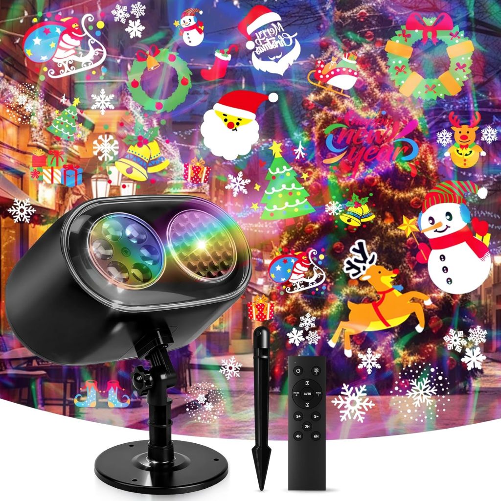 2 in 1 Projecteur de Noel Exterieur, LED Projecteurs Dynamique avec Télécommande pour Changer de Motif, 12 Motif et 8 Couleurs Effet, IP65 Lampe Projecteur Décoration pour Noël Halloween – Le détail qui change tout au quotidien