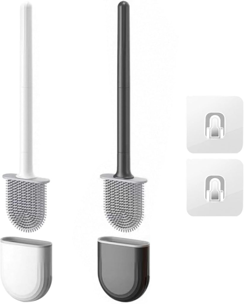 2 Pcs Brosse WC Silicone, Balai Brosse Suspendu Plate, Brosse Toilette Supports, Anti-Goutte Antibactérienne Balai WC Ventilée, Séchage Rapide Sans Odeur, Balayette WC Montage Mural/Au Sol – Le détail qui change tout au quotidien