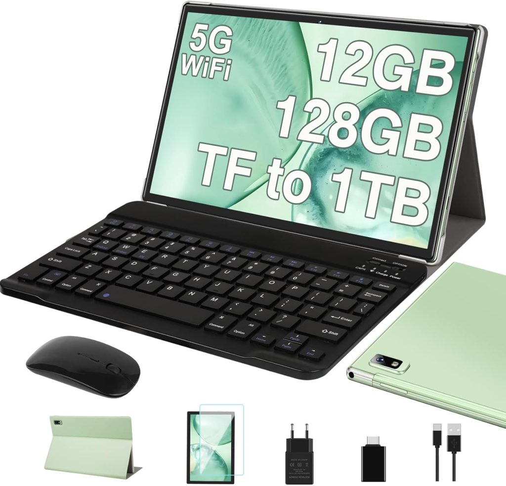 2026 Latest Tablette Tactile 10 Pouces Android 13 OS,12GB RAM+128GB ROM/TF 1TB | 5G WiFi | 8 Cœurs | 2.0 GHz | GMS Certified | Widgets | Parental Controls | Tablette avec étui, clavier et souris-Vert – Le détail qui change tout au quotidien