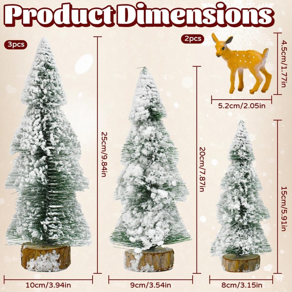 3 Pcs Mini Sapins de Noël 15/20/25 cm et 2 Pcs Rennes, Sapins Artificiels Miniatures avec Base en Bois, Petit Arbre de Noël Artificiel avec Effet Neige, pour Décorations Table Hiver Fête – Le détail qui change tout au quotidien