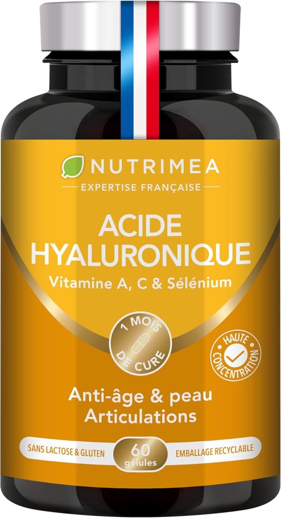 ACIDE HYALURONIQUE – Avec Collagène Marin – 100% Pur – Riche en Vitamines A & C – Anti Rides, Anti Age & Articulations – Agit en Profondeur – 60 Gélules Vegan – Nutrimea – Fabriqué en France – Le détail qui change tout au quotidien