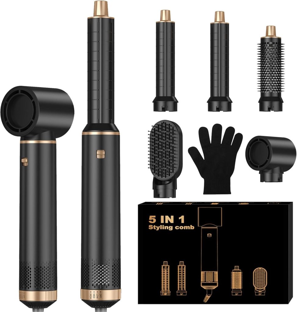 Air Brush 5 en 1 Airbrush Hair Styler Airstyler 5 en 1 avec Seche Cheveux, Brosse Soufflante, Fer a Boucler, Thermal Brush, Brosse Lissante Seche Cheveux 5 en 1 pour Sécher, Boucler, Lisser – Le détail qui change tout au quotidien