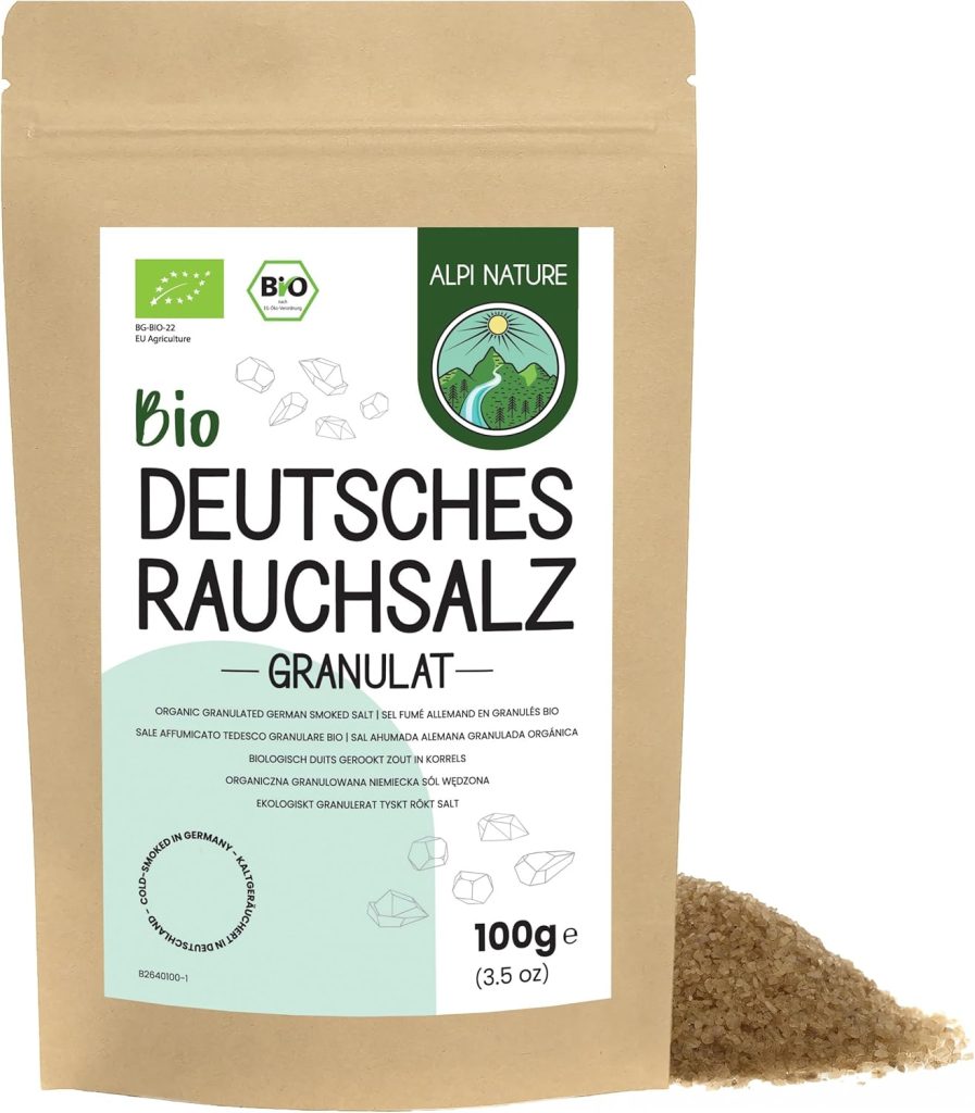 Alpi Nature Granulés de Sel Fumé Allemand BIO 1-3 mm 100g, Sel de Mer Granulé au Bois de Hêtre Fumé à Froid – Le détail qui change tout au quotidien