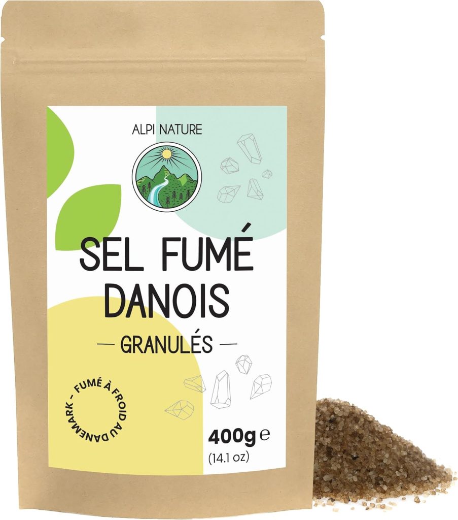 Alpi Nature Granulés de Sel Fumé Danois 1-3 mm 400g, Sel de Mer Granulé au Bois de Hêtre Fumé à Froid – Le détail qui change tout au quotidien