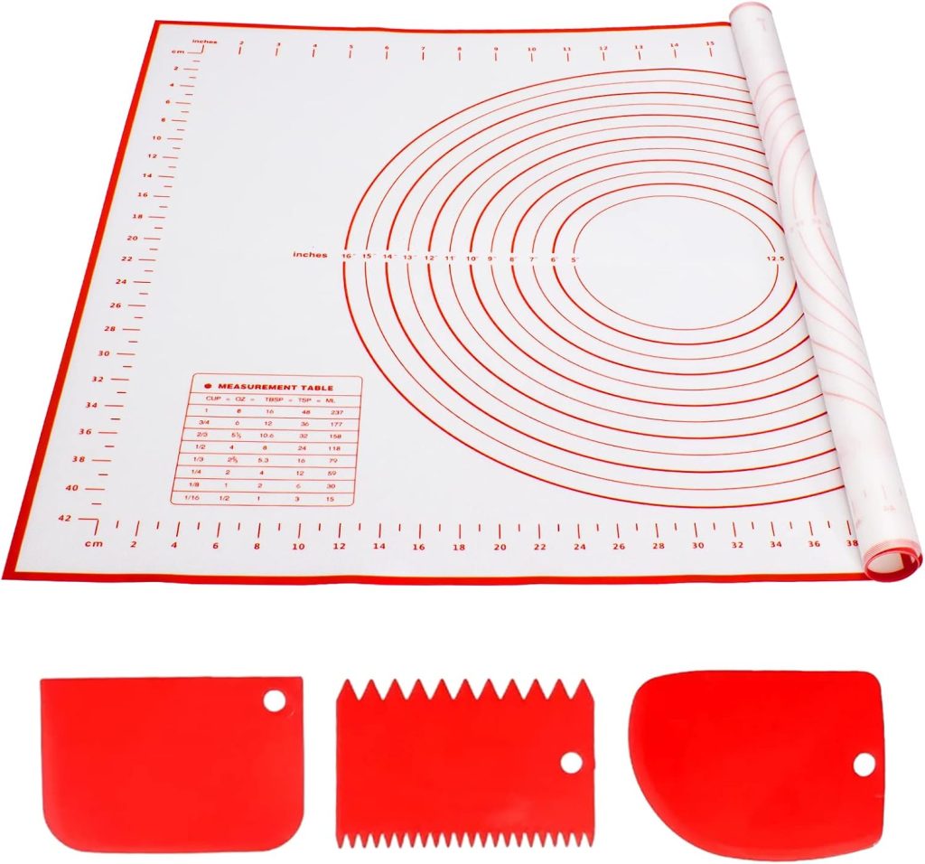 Alyvisun Reutilisable Tapis de Cuisson Silicone avec 3 Grattoirs, 70 x 50cm Antidérapant Tapis et Ustensiles à Pâtisserie Mesurable Plaque Accessoire pour Pâte, Macaron, Biscuit – Le détail qui change tout au quotidien
