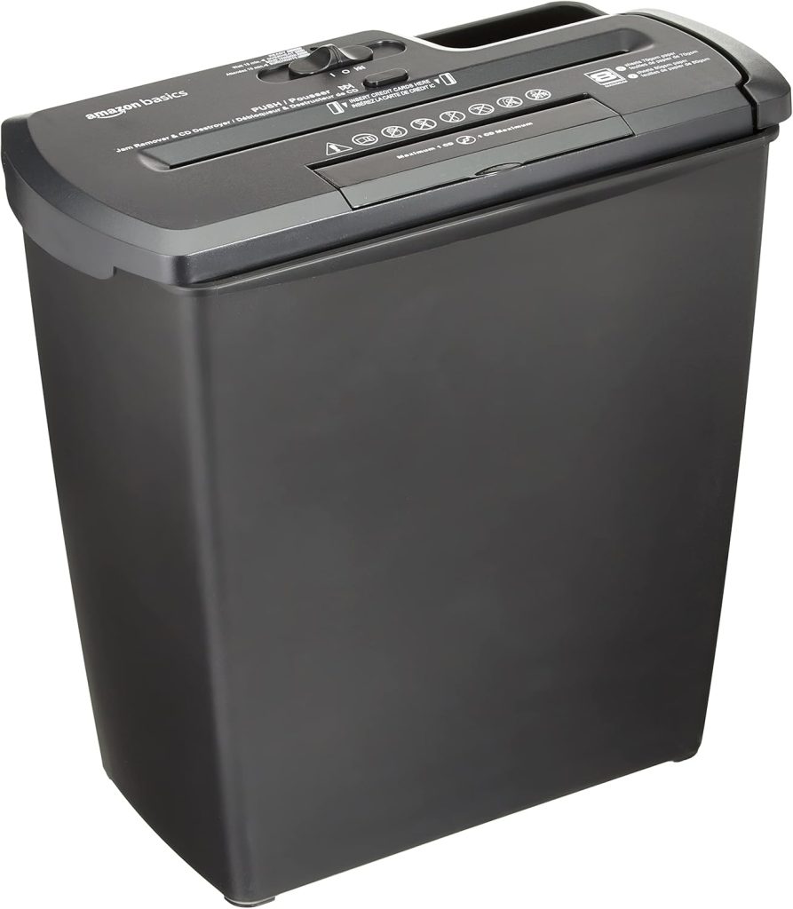 Amazon Basics Destructeur de Documents/Cartes de crédit/CD , 7-8 Feuilles Coupe de bande, Noir – Le détail qui change tout au quotidien