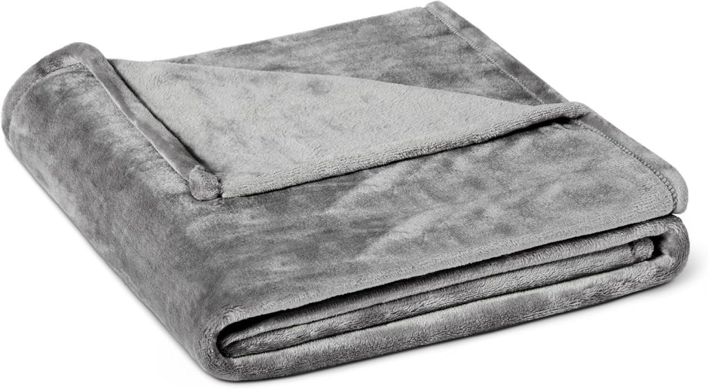 Amazon Basics Plaid Polaire, Douce et Chaude, Moelleuse Couverture pour Canapé, 127 x 152 cm, Gris – Le détail qui change tout au quotidien