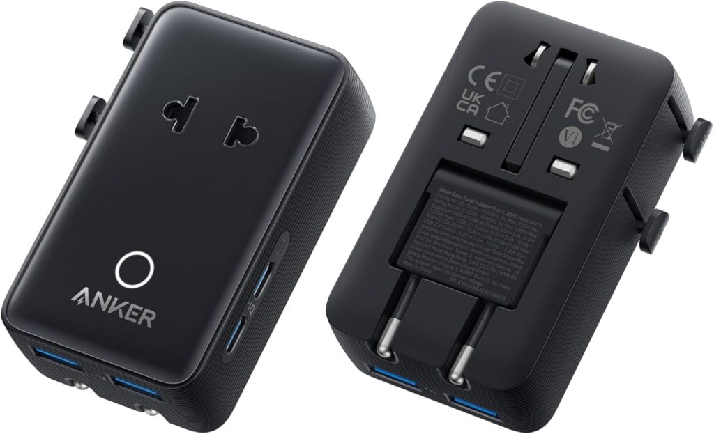 Anker Nano Adaptateur Prise Universelle, Adaptateur Voyage 5 Ports avec 1 Prise CA, 2 Ports USB A et 2 Ports USB C, contrôle Intelligent de la température, à Utiliser dans Plus de 200 Pays – Le détail qui change tout au quotidien