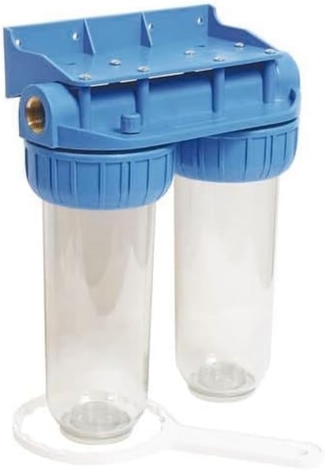 AQUAWATER – 104509 – Station filtre double nu avec clé de déserrage – Taille standard 10″ – Raccordement F20/27 (F3/4″) – Le détail qui change tout au quotidien