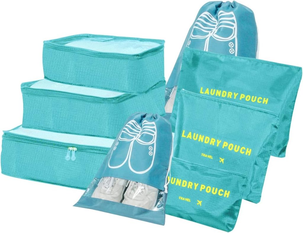 BillyBath Organisateur de valise, sacs à vêtements de voyage, 8 en 1, ensemble d’organisateur de valise, sacs de voyage, pour vêtements, chaussures, sous-vêtements cosmétiques (bleu clair) – Le détail qui change tout au quotidien