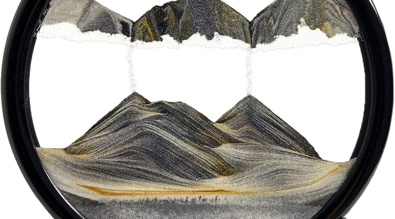 SANDCLE Peinture de Sable Mobile – Cadre Sablier, Images de l’art du Sand en Mouvement, Dynamique dans un Verre Rond, Paysage pour le Bureau Maison Décoration(Noir, 7 Pouces) – Le détail qui change tout au quotidien