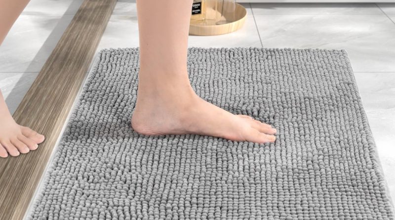 HITSLAM Tapis de Bain en Chenille, 60x40cm Tapis de Douche Super Absorbant, Tapis Salle de Bain Antidérapant, Décoratif Lavable en Machine, pour Douche et Baignoire, Gris – Le détail qui change tout au quotidien