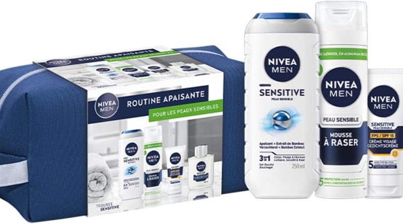 Beauté et ParfumCoffrets cadeauxCoffrets cadeaux,Beauté et ParfumSoins pour la peau NIVEA MEN – Trousse Sensitive – Gel Douche 3-en-1 (250 ml) + Mousse À Raser (200 ml) + Baume Après-Rasage (100 ml) + Crème Visage FPS 15 (75 ml) – Routine Apaisante Corps & Visage – Peaux Sensibles – Le détail qui change tout au quotidien
