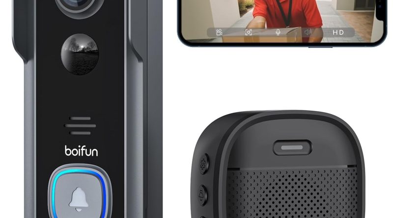 BOIFUN 2K FHD Sonnette sans Fil Exterieur Etanche, Grand Angle de 166°, Installation Facile, Détection Humaine PIR, Vision Nocturne, IP65 Étanche, Audio Bidirectionnel, Supporte Uniquement 2,4 GHz – Le détail qui change tout au quotidien