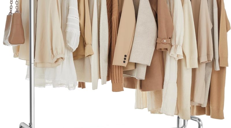 SONGMICS Portant à Vêtements avec Roulettes, Tringle Extensible pour Charge Lourde, Capacité de Charge 130 kg, 45 x (110-150) x 162,9 cm, Porte-manteau, en Métal, Chromé, Argent HSR11S – Le détail qui change tout au quotidien