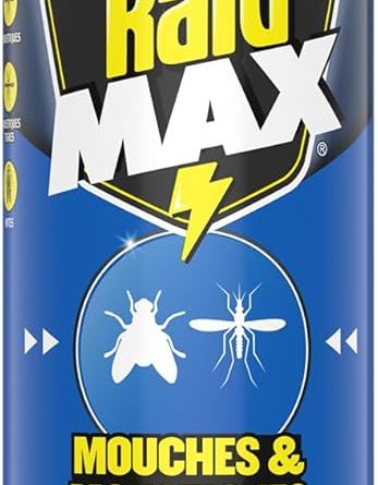 Raid Max Aérosol Mouches et Moustiques – 2 en 1 Action Rapide et Longue Durée – Sans Parfum Ajouté – 1 Aérosol – Le détail qui change tout au quotidien