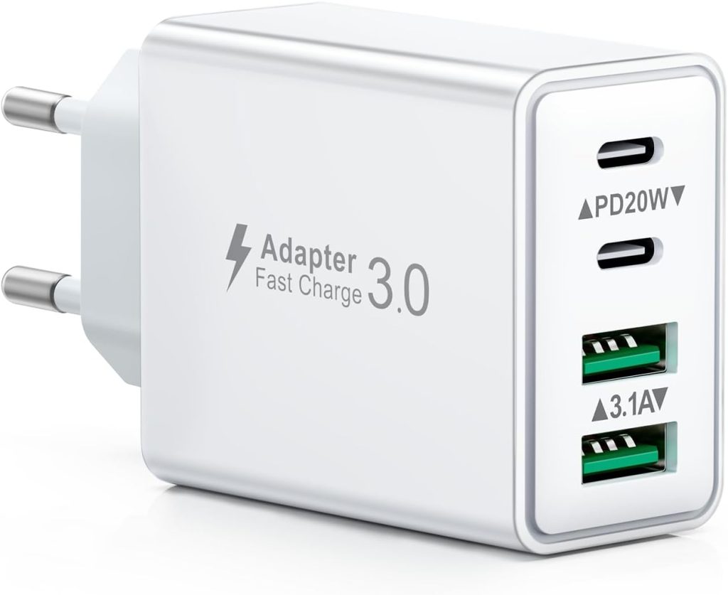 Chargeur USB C, 40W 4 Port Prise Chargeur Rapide USB C, Multiple Secteur Double PD+QC 3.1A Type C Adaptateur pour iPhone 17 16 15 14 13 12 11 Pro Max X XS XR 8 7 6S Plus Mini SE, iPad, Samsung Galaxy – Le détail qui change tout au quotidien