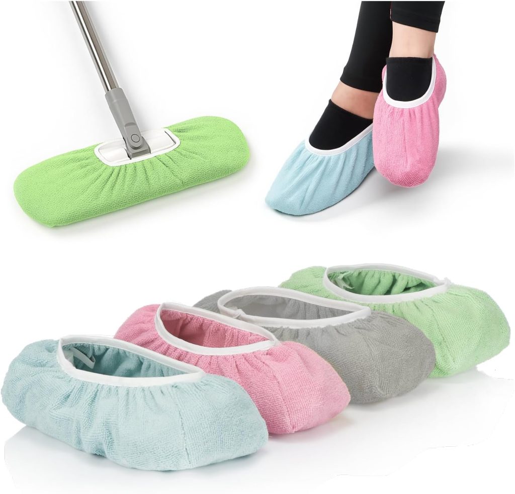COM-FOUR® Housses de balai 4x en 4 couleurs – Housses de rechange en microfibre pour le nettoyage humide et sec des sols – Chaussures de nettoyage, lavables jusqu’à 60°C (4 pièces – couleurs subtiles) – Le détail qui change tout au quotidien