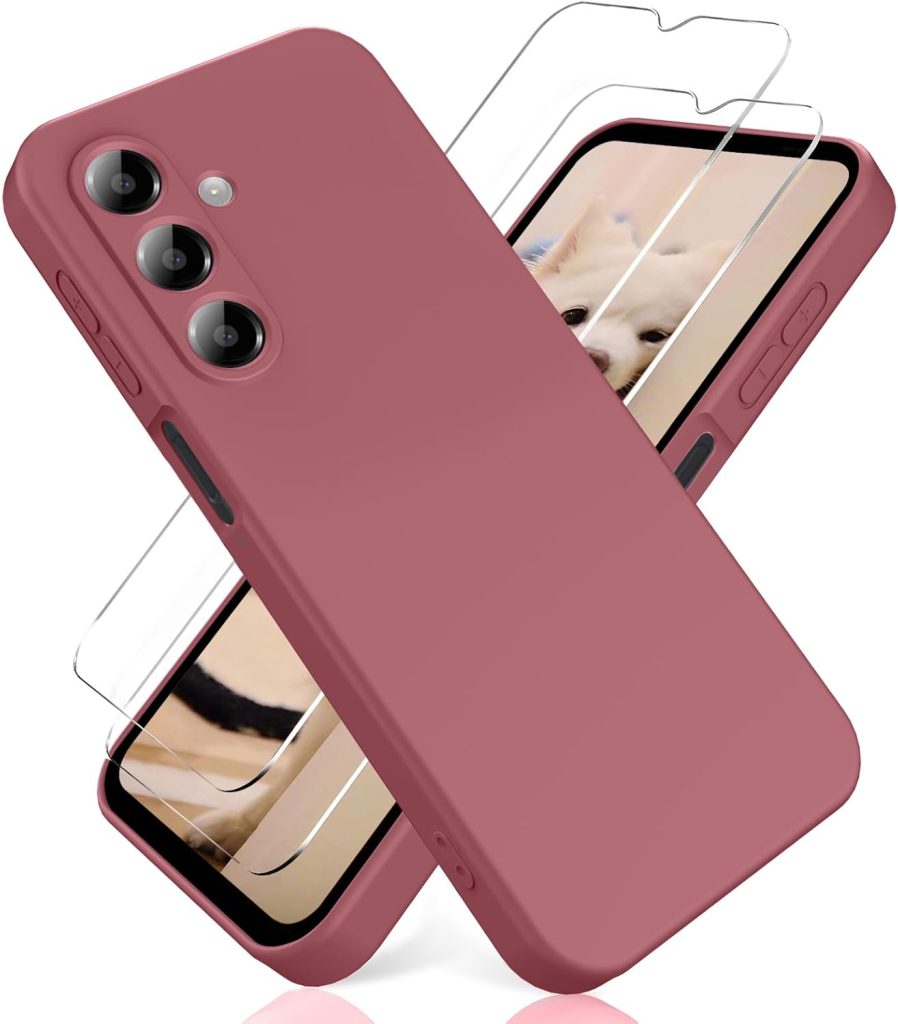 Coque pour Samsung Galaxy A17 4G/5G, avec [2 Pièces] Protection d’écran en Verre Trempé, Housse Silicone TPU Souple Liquide – Rose Foncé Foncé – Le détail qui change tout au quotidien