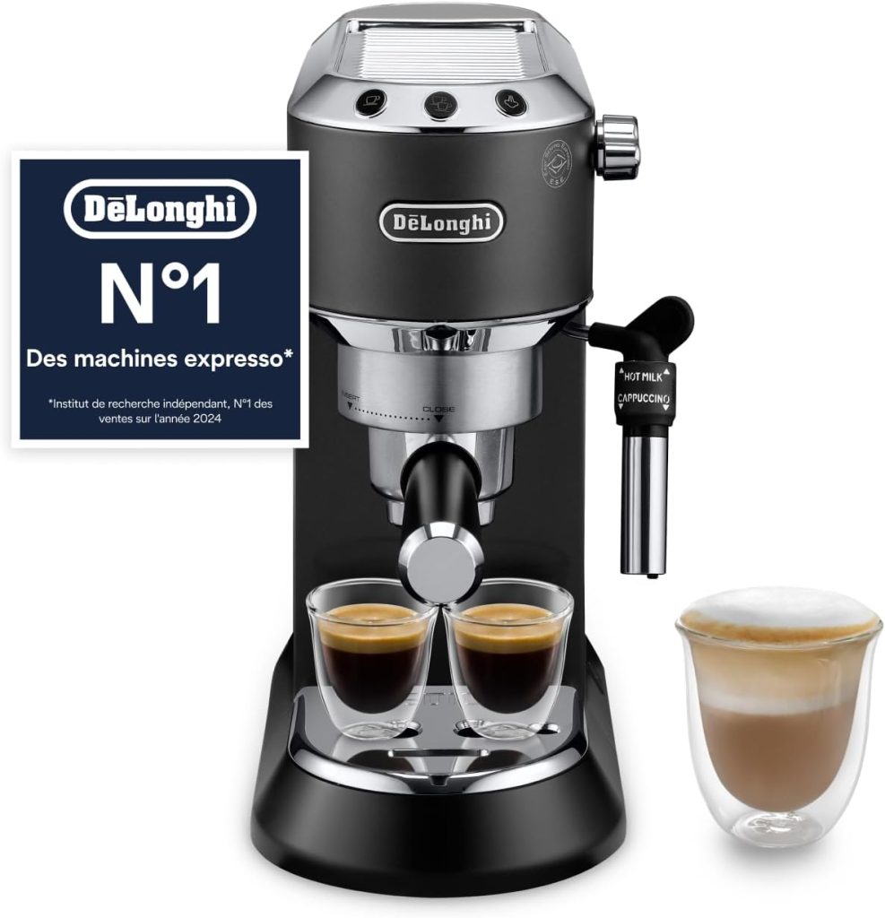 De’Longhi Dedica Style – Perfetto Machine à Expresso Compacte, Mousseur de Lait Manuel pour Expresso et Cappuccino, Compatible Dosettes ESE, Panneau de Commande à Boutons, Largeur 15cm, Noir(EC685.BK) – Le détail qui change tout au quotidien
