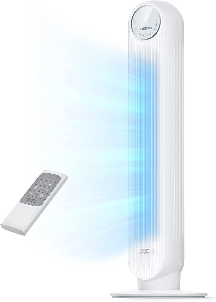 Dreo ventilateur colonne silencieux, Vitesse 7,6 m/s – Oscillant à 90° ventilateurs tour pour chambre, 92 cm de haut, Télécommande incluse, 4 vitesses, 4 modes, minuterie 8H, Noir – Nomad One – Le détail qui change tout au quotidien