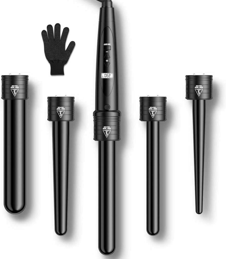 ELEHOT-Store Fer à Boucler Boucleur Céramique Fer à Friser 5 en 1 avec LCD Écran Multifonction Interchangeable boucleur a cheveux avec Gant ET-W301 – Le détail qui change tout au quotidien