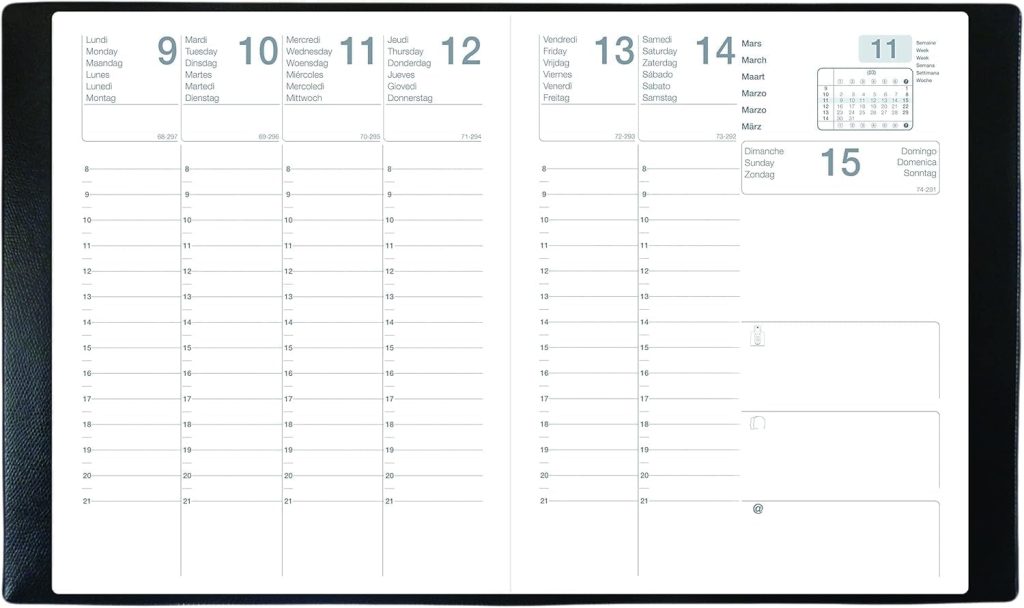 - Planification facile avec une semaine sur deux pages, permettant une vue d’ensemble claire.
