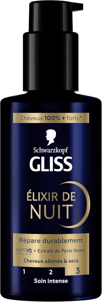 GLISS – Schwarzkopf – Elixir de Nuit – Repare Durablement – Haptiq System – Extrait de Perle Noire – Cheveux Abîmés & Secs – Cheveux 100% Plus Forts – Soin Intense – Sans Rinçage – 100ml – Le détail qui change tout au quotidien