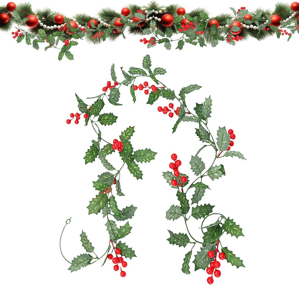 Guirlande de décoration de Noël, Guirlande de Noël artificielle pour intérieur et extérieur, Guirlande de Noël en pin artificiel avec baies rouges, pour l’hiver, extérieur – Le détail qui change tout au quotidien