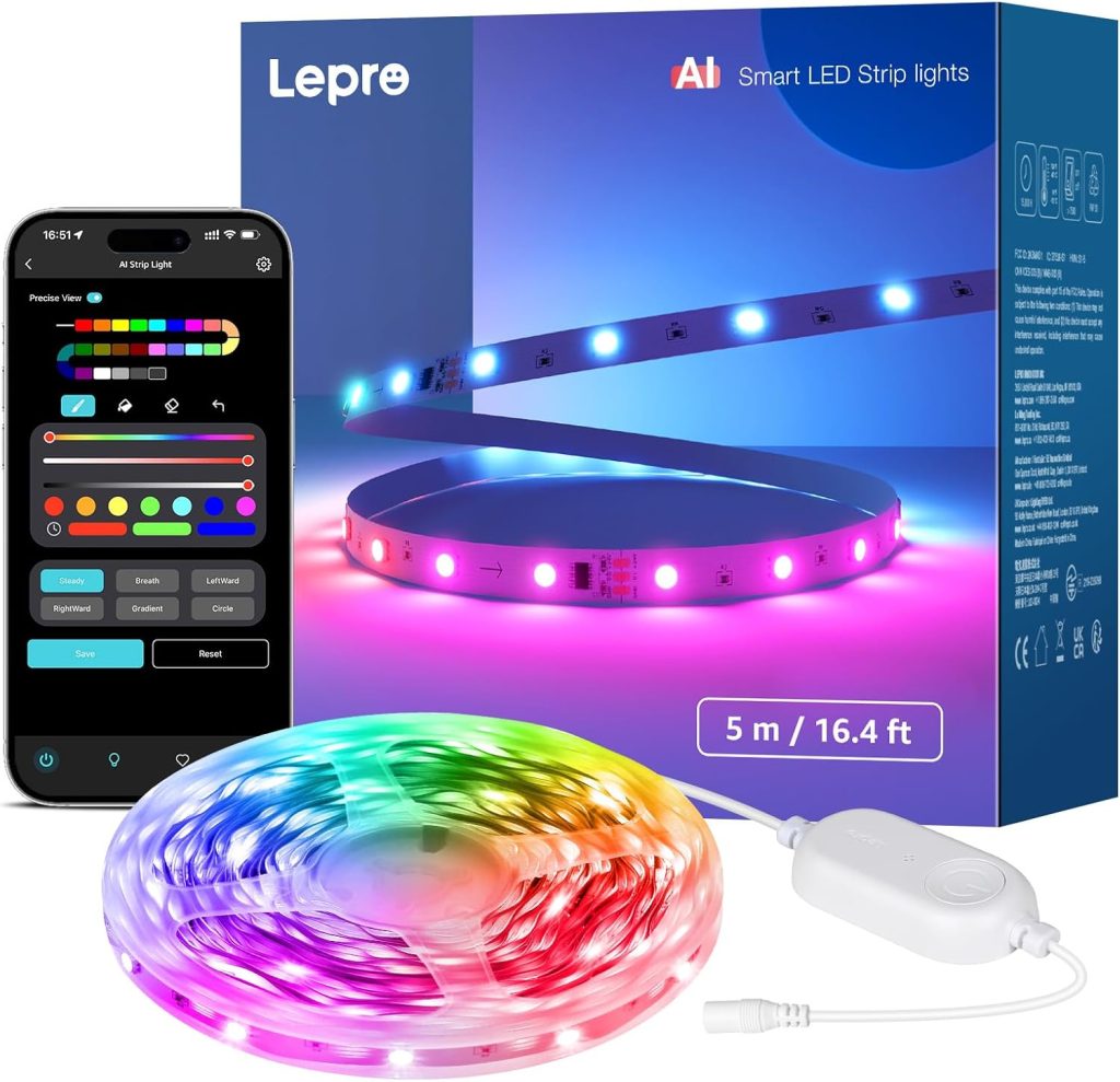 Lepro S1 IA Ruban LED Connecté 5M, Concepteur d’Éclairage IA Personnalisé, Bande LED Wifi RGB+IC App Contrôle, Sync Musique, Compatible avec Alexa et Google Assistant pour Maison Chambre Fête Gaming – Le détail qui change tout au quotidien