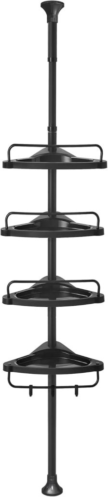 SONGMICS Étagère de Douche Réglable en Hauteur, 4 Niveaux, Étagère d’angle Télescopique, Hauteur 85 à 305 cm, Rangement de Salle de Bain, Noir BCB001B01 – Le détail qui change tout au quotidien
