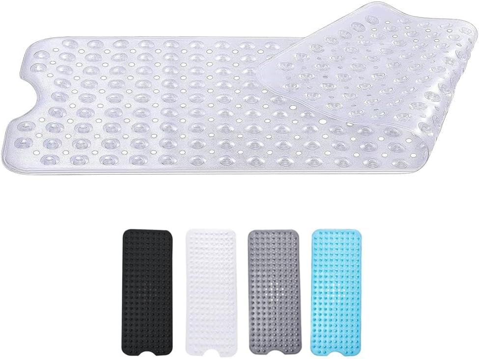 Zuvo Tapis de Bain Antidérapant | Extra Long 100 x 40 cm | Ventouses Puissantes & Anti-Moisissure | Lavable en Machine | Sécurisé pour Enfants & Seniors | Transparent, Claire – Le détail qui change tout au quotidien