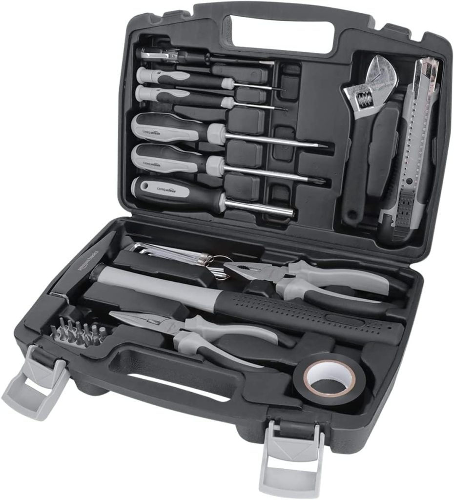 Amazon Basics Jeu d’outils pour la maison, 32 pièces, Noir/gris – Le détail qui change tout au quotidien