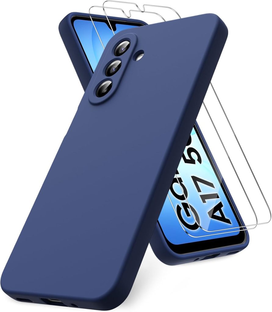 Coque Compatible avec Samsung Galaxy A17 4G/5G, 2 Film de Protection en Verre trempé, Housse Souple en TPU en Silicone Liquide, Housse en Caoutchouc Antichoc – Bleu Nuit – Le détail qui change tout au quotidien