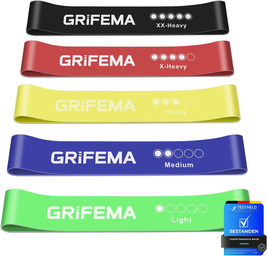 GRIFEMA GA5001, 5 Bandes Élastiques de Musculation, 5 Niveaux de Résistance pour la Musculation, Le Pilates, Le Yoga et Plus Encore, Vert-Bleu-Jaune-Rose-Noir – Le détail qui change tout au quotidien