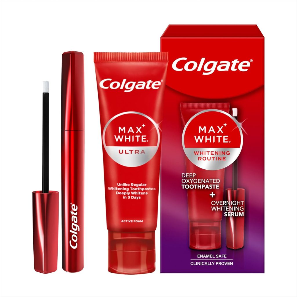 COLGATE – Kit de blanchiment dentaire – Sérum blancheur nuit et dentifrice Max White Ultra – 2,5ml + 75ml – Le détail qui change tout au quotidien
