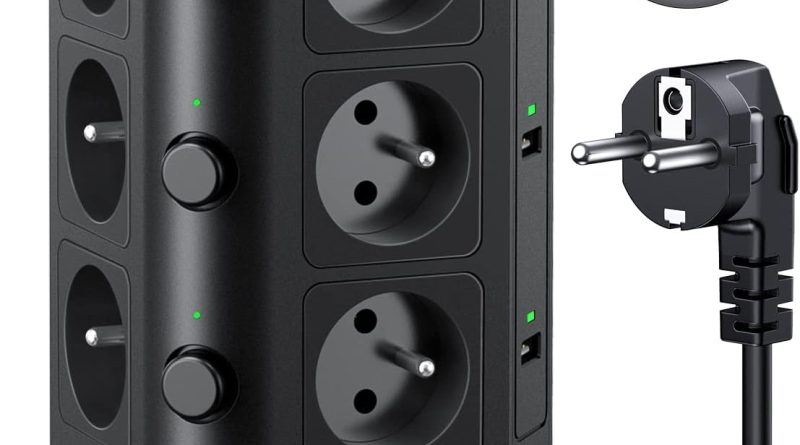 PLUS DE PUISSANCE : La multiprise electrique comprend 12 Type-E Prises de courant et 6 ports USB avec un câble d’alimentation de 2 M pour une utilisation maximale. Ce qui permet de connecter jusqu’à 18 appareils simultanément même lorsque l’espace est limité, ce qui en fait la solution idéale pour la maison, le bureau, les réunions, les voyages et bien plus encore. (Puissance maximale: 4000 W)