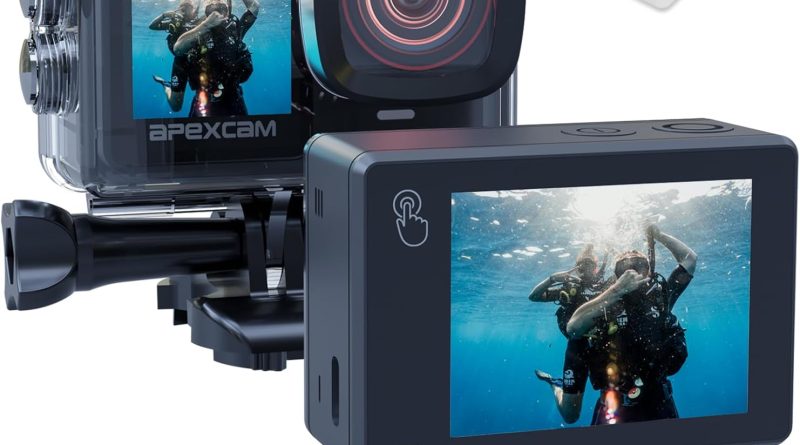 Apexcam Caméra Sport 4K 60FPS, Action Cam WiFi avec Double Écran et Micro SD 64GB, Stabilisation EIS Étanche 40M avec 2 Batteries 1350mAh, Kit d’Accessoires et Télécommande 2.4G – Le détail qui change tout au quotidien