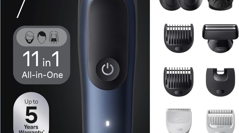 Créez votre style comme un professionnel et 100% sans effort : kit 11-en-1 de Braun pour un rasage de la tête aux pieds avec des outils prévus pour tailler votre barbe, vos poils d’oreilles et de nez, couper vos cheveux et raser votre corps