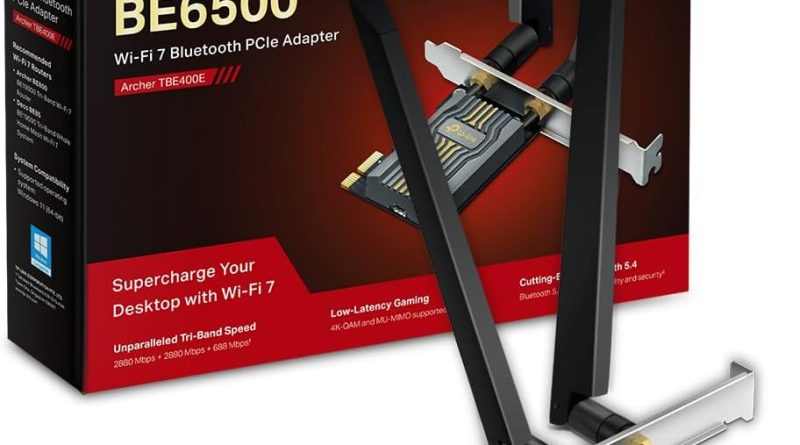 TP-Link WiFi 7 Carte WiFi PCIe BE6500 Archer TBE400E, Tri-Bandes (6GHz/5GHz/2.4GHz), débits Jusqu’à 2 882 Mbps, Bluetooth 5.4 et 2 antennes multidirectionnelles, Idéal pour Gaming, WPA3, Windows 11 – Le détail qui change tout au quotidien