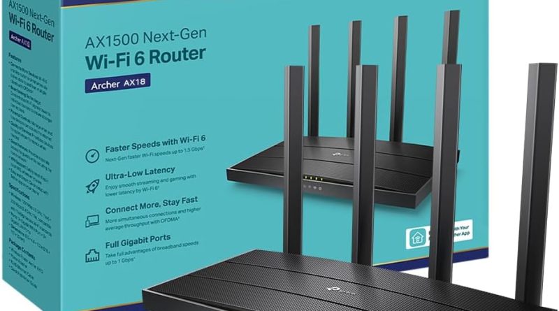 TP-Link Archer AX18 Routeur WiFi 6, Routeur WiFi AX 1500 Mbps bi-Bande, 4 Ports Gigabit, 4 antennes à Haute Performance, WPA3, Contrôle Parental, EasyMesh, Antivirus intégré – Le détail qui change tout au quotidien