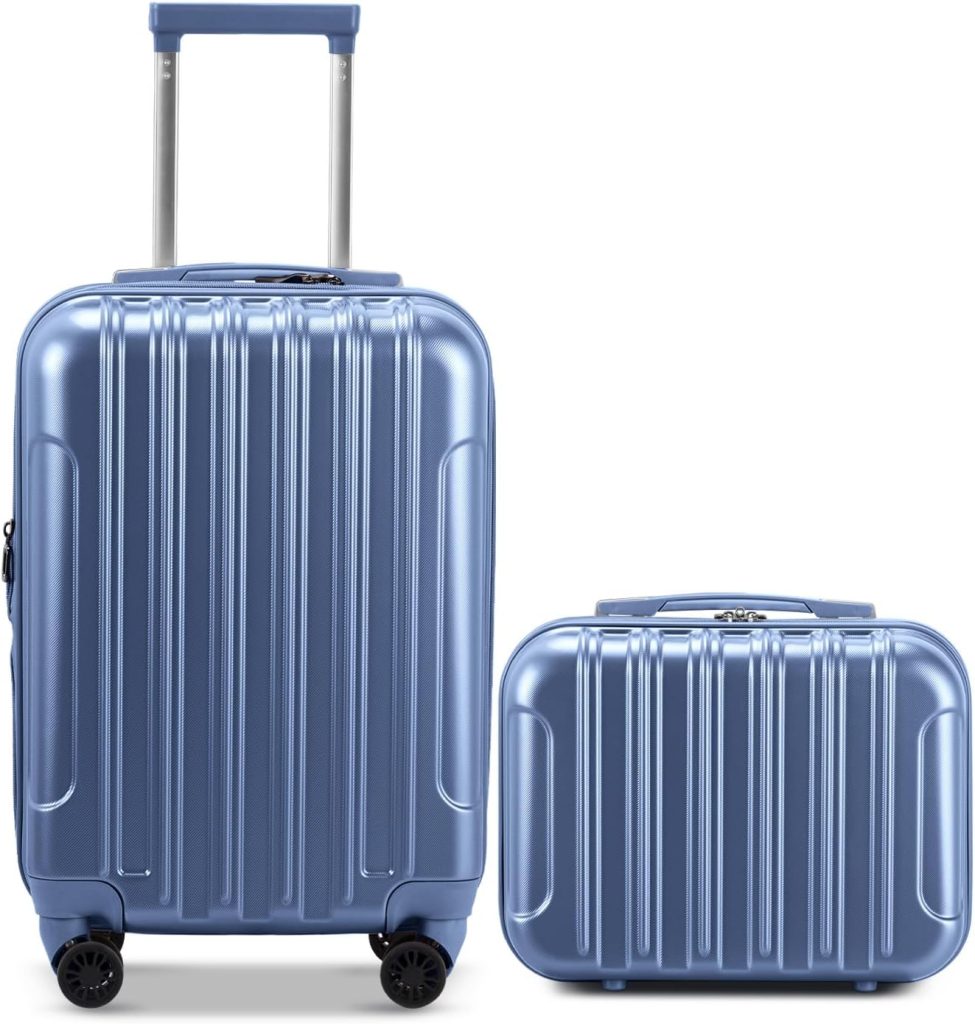 Dimensions des valises : 20″ (53 x 35 x 21 cm) et vanity case (12″ – 37 x 21 x 18 cm). Poids total : 3,8 kg. Pour plus de détails sur la compatibilité et l’usage, à vérifier sur la fiche Amazon.