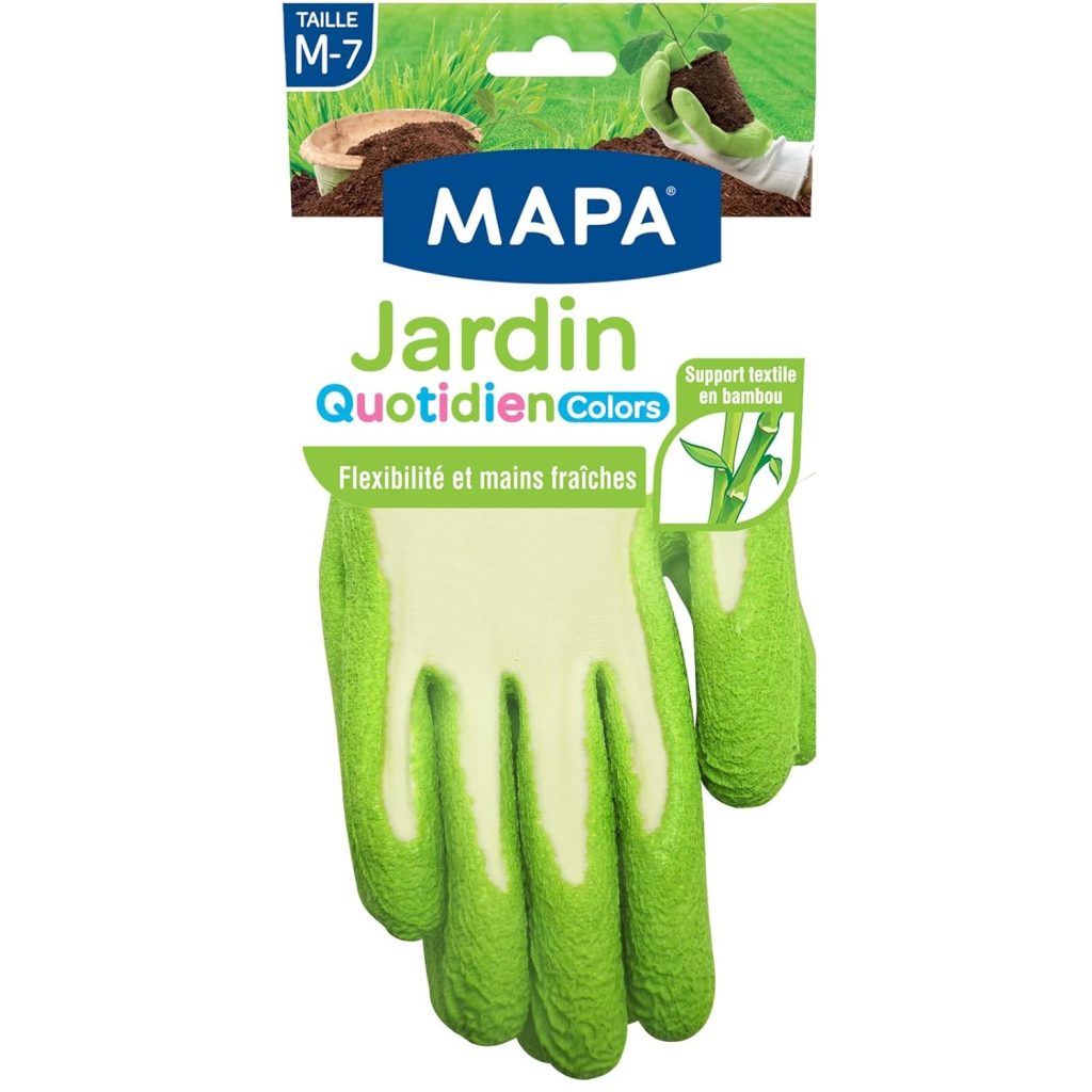 MAPA – Jardin Quotidien Colors – Gants de Jardinage Enduction Latex et Textile Bambou – Souples et Absorbants – 1 paire – Coloris Aléatoire Rose/Vert/Bleu – Taille M – Le détail qui change tout au quotidien