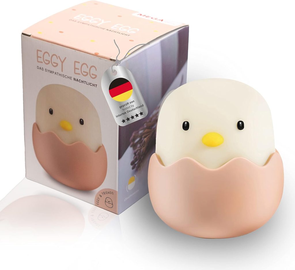 MegaLight Veilleuse LED pour enfants | Veilleuse bébé sans petits éléments ingérables | Lampe d’allaitement tactile à intensité variable | Lampe de nuit rechargeable par USB | Eggy Egg – Le détail qui change tout au quotidien