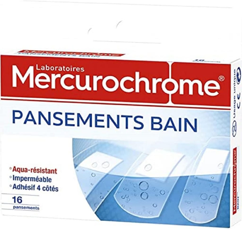 MERCUROCHROME – Pansements bain aqua-résistant – Imperméables à l’Eau – Boîte de 16 pansements – 3 Formats Différents – Ultra-fins et Transparents – Ne colle pas à la plaie – Le détail qui change tout au quotidien