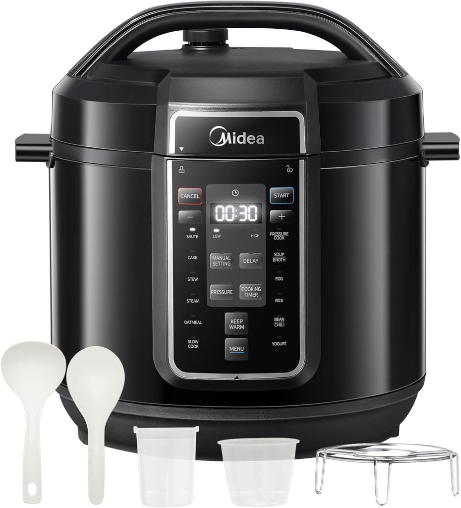Midea 9-in-1 Autocuiseur électrique 16 préréglages Instant Multi Cooker Pot antiadhésif Yogurt Maker Rice Cooker Slow Cooker Sauté Steamer 8 Quarts Black, Stainless Steels Inner Pot – Le détail qui change tout au quotidien