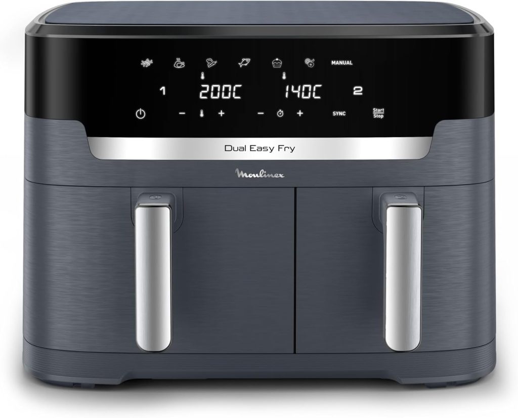Moulinex Dual Easy Fry XXL, air fryer 2 tiroirs, jusqu’à 10personnes, 7programmes prédéfinis, EZ942BF0, Gris Foncé – Le détail qui change tout au quotidien