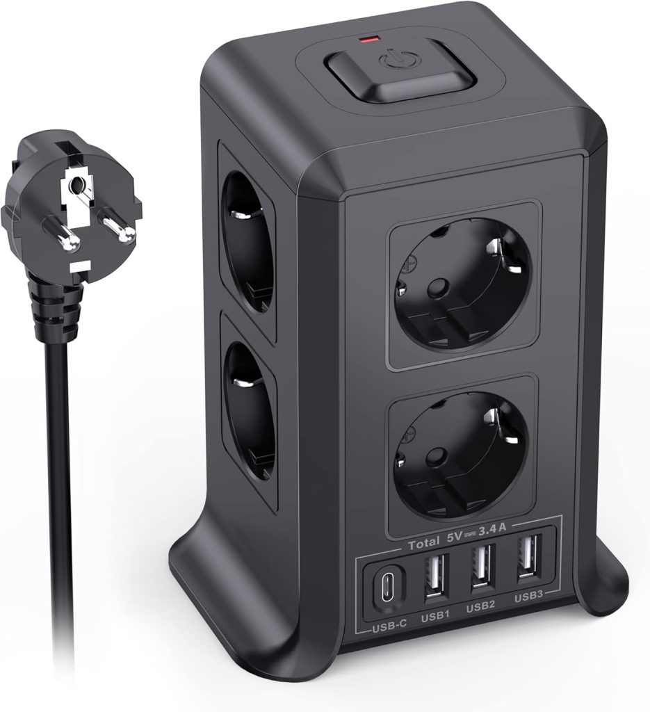 Multiprise avec Interrupteur, Multiprise Parafoudre et Surtension with 8 Sortie AC and 5 USB Ports, pour Le Bureau, Salon, Chambre à Coucher – Le détail qui change tout au quotidien