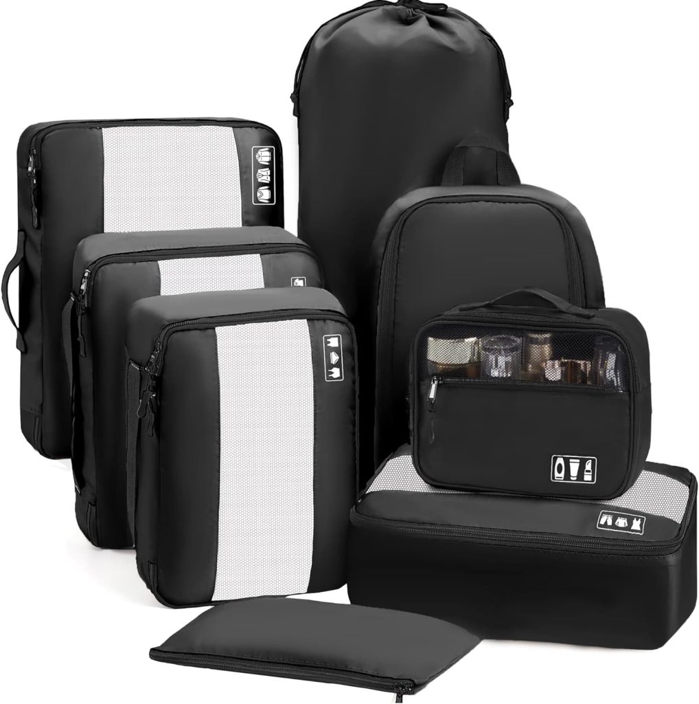 MURISE Organisateur de Valise 8 Pièces, Rangement Valise Organisateur pour les Voyages et les Vacances, Packing Cubes avec Sac à Chaussures et Sac à Cosmétiques, Voyage Accessoires, Noir – Le détail qui change tout au quotidien